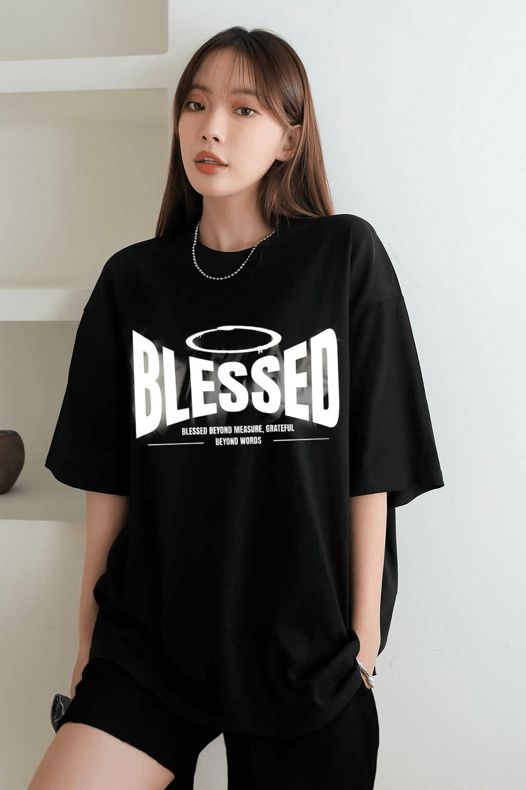 Unisex Local Brand Boxy Fit T-Shirt Printed with Blessed