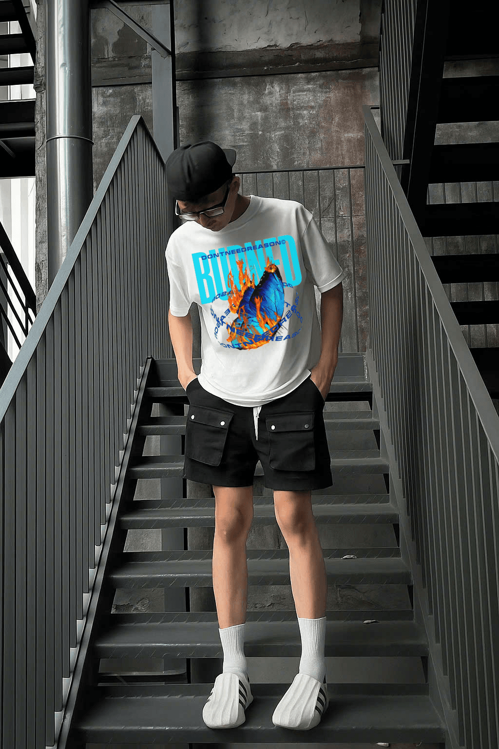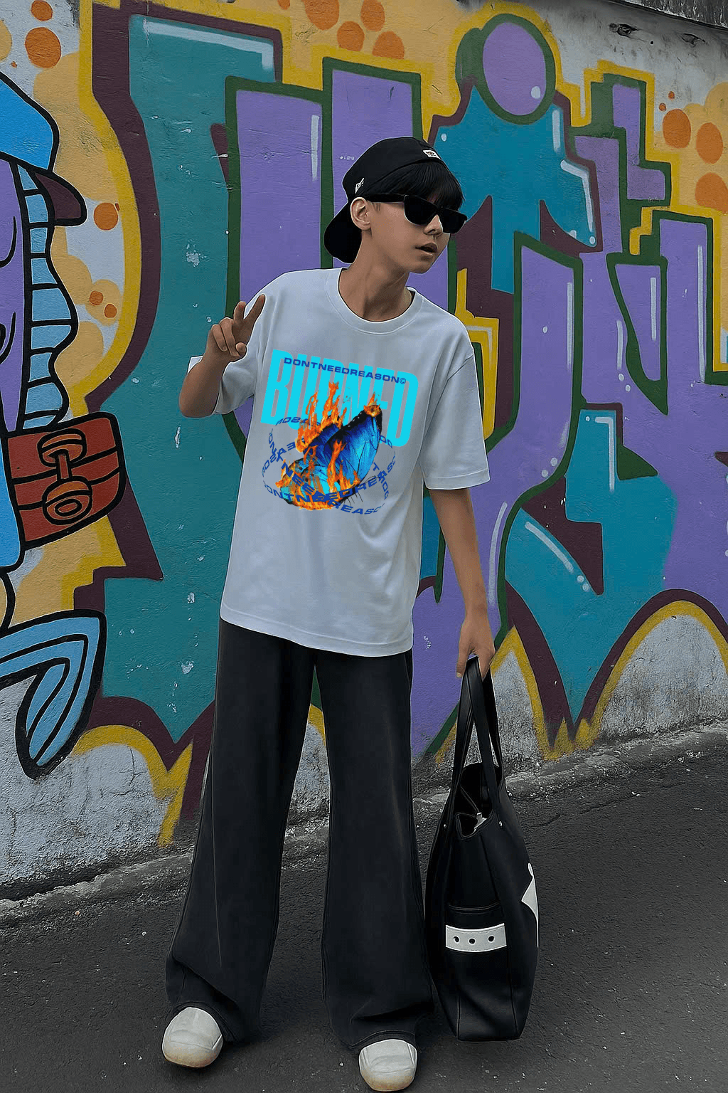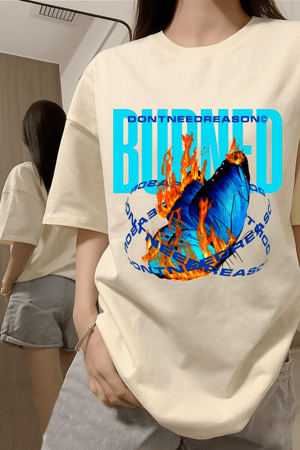 Unique Unisex Local Brand Boxy Fit T-Shirt Printed with DON’T NEED REASON – BURNED graphic print for a bold and standout look.