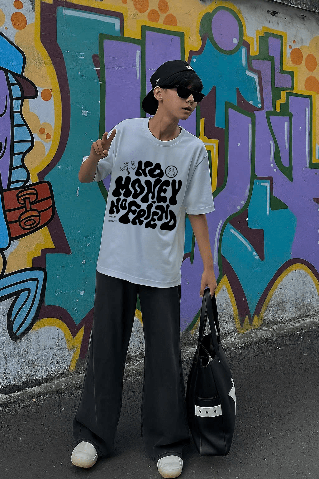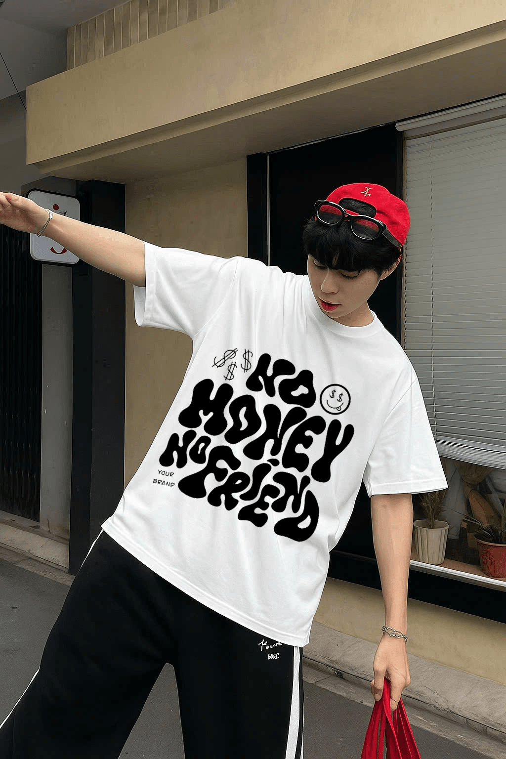 Unisex Local Brand Boxy Fit T-Shirt Printed with NO MONEY NO FRIEND