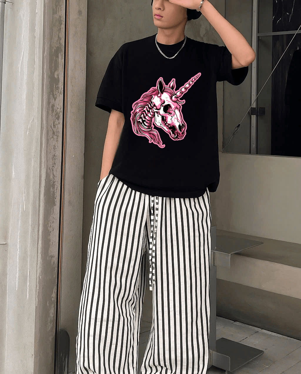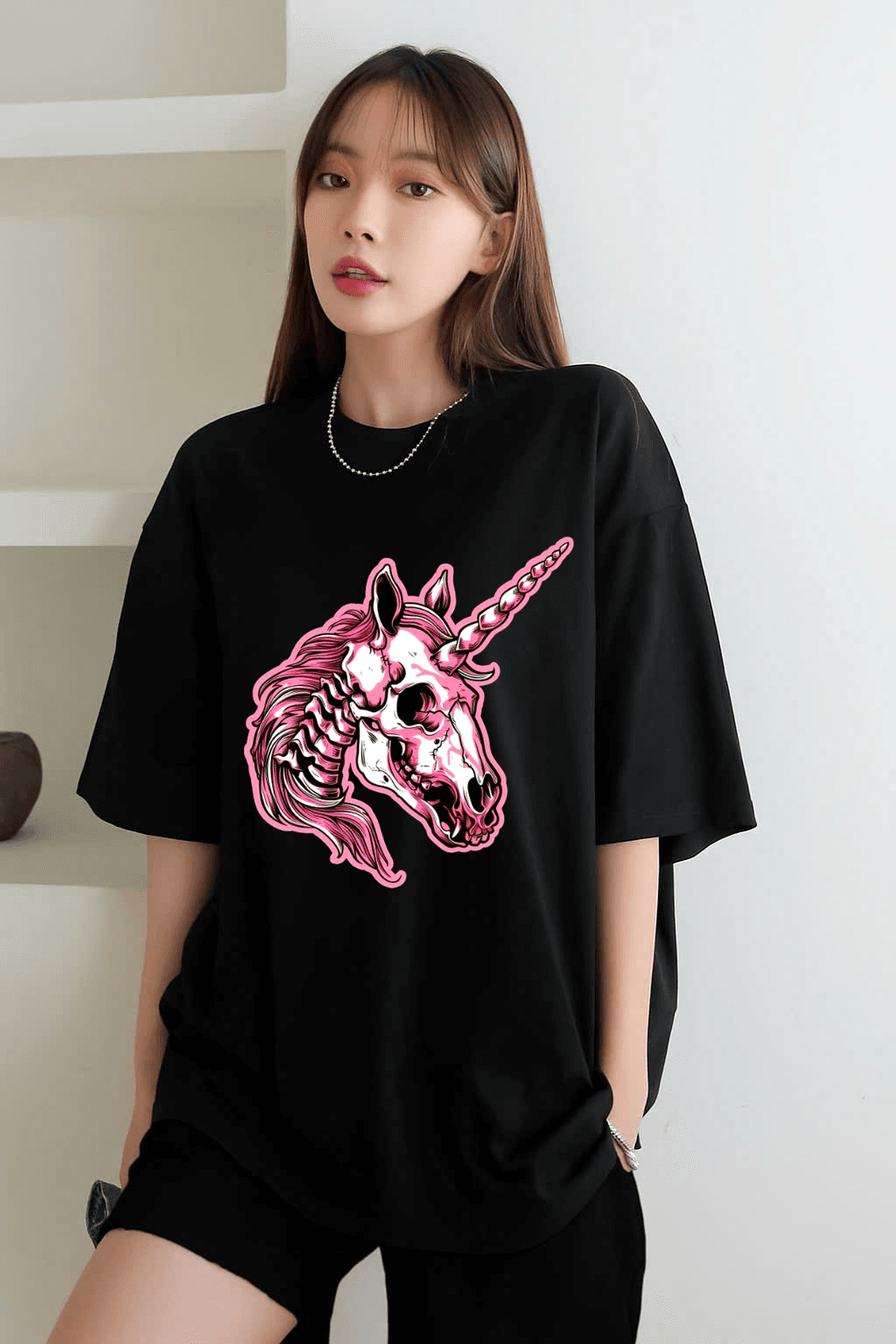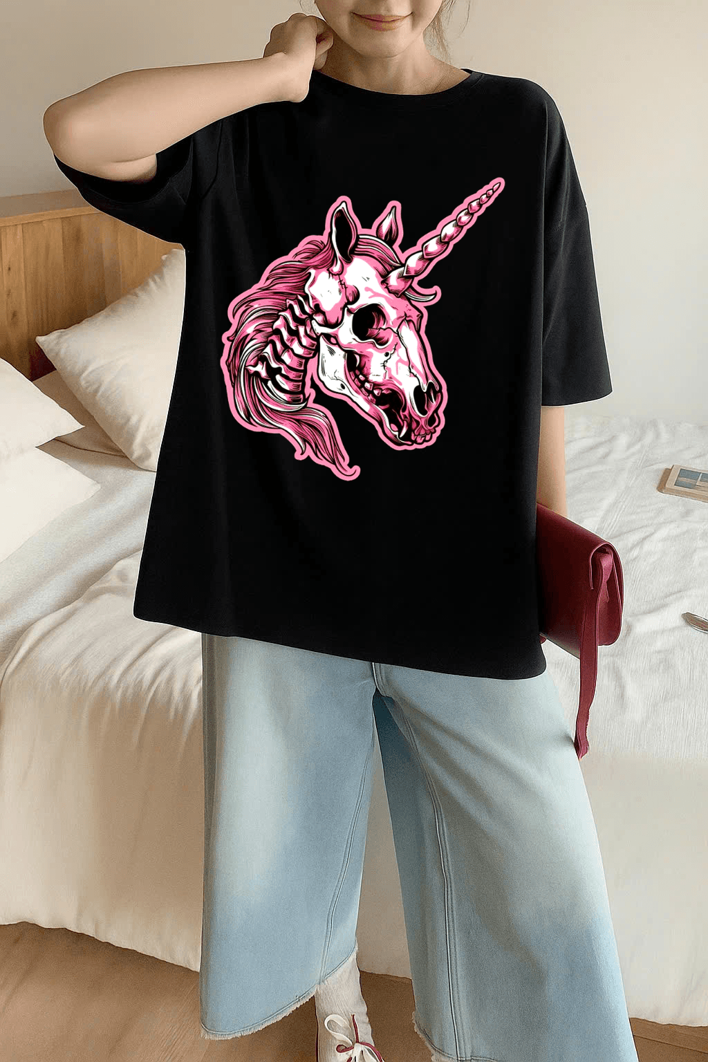 Unique Unicorn Skull graphic print for a bold and standout look.