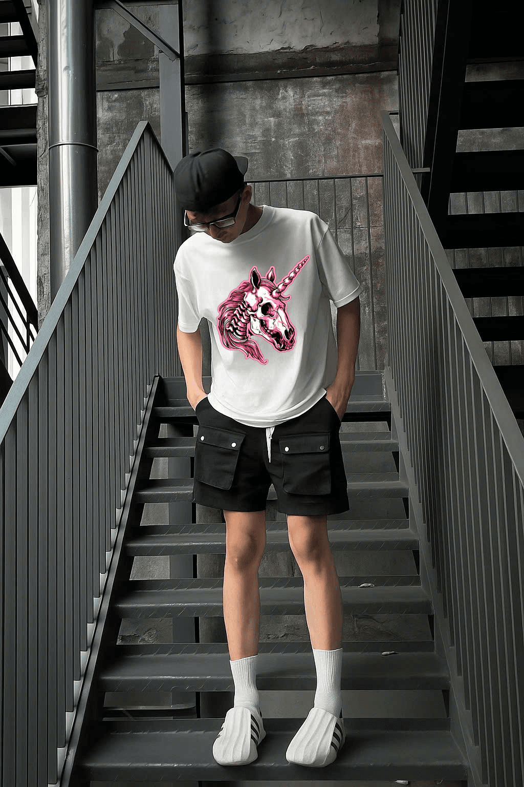 Unisex Local Brand Boxy Fit T-Shirt Printed with Unicorn Skull